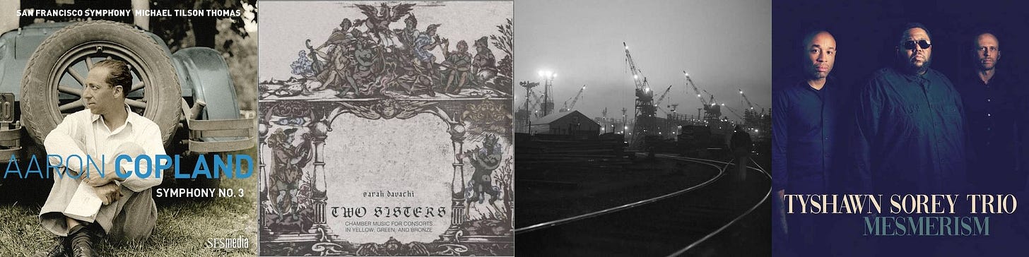 This week's tally of fascinating things I've stuck into my ears includes a July 4 American music binge kicked off with Aaron Copland's Symphony No. 3 played by the San Francisco Symphony, plus new and upcoming releases featuring Sarah Davachi, Magnus Granberg, Tyshawn Sorey, and more.