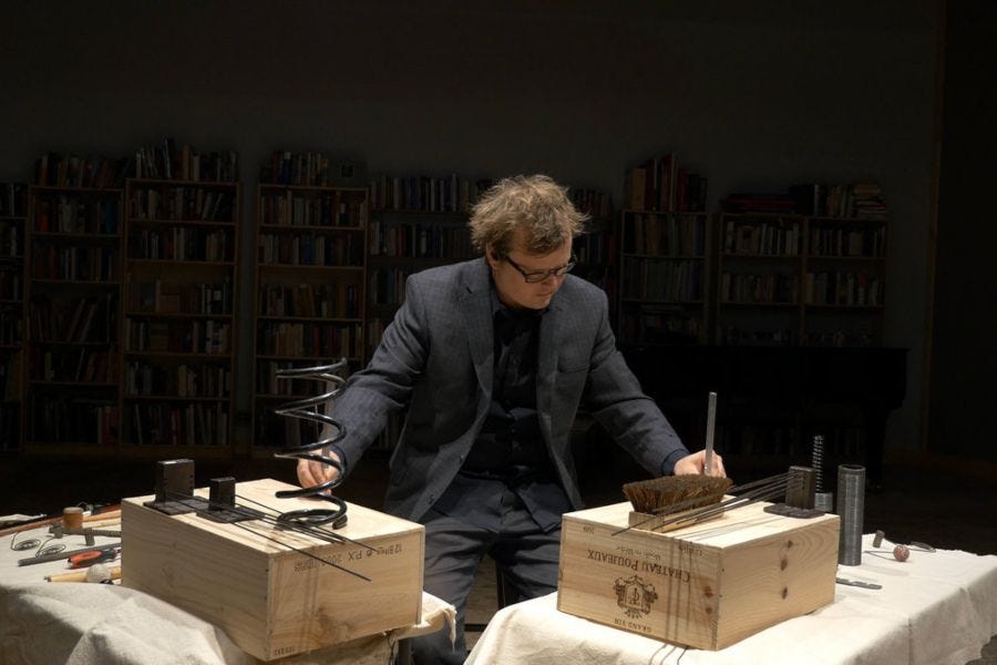 That was how I came to the instrument of it. Then I started composing really for the process of this live filtration, and thinking about what types of sound – again, really not banking on any hi-fi mechanics, just with the basics of shitty computer speakers or whatever – might work in the interaction of these objects and that sound source that feel custom-designed to produce these very dynamic and very full-body artifacts. The tactile exploration was then the process of composition. I just started doing what I do: testing and hearing and refining, thinking about these complex microphenomena, but also complex architectures in time.