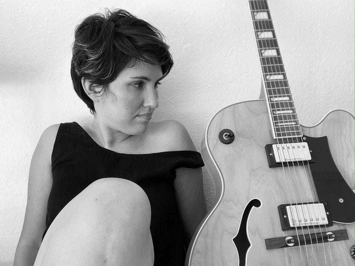 That occasion, presumably a time of concern and discomfort, seems to have acted as a catalyst: the album, we're informed by its prefatory texts, in some manner represents Ackerley's response to the deaths of two important mentors: the guitarists Vic Juris and Bobby Cairns. In the album's liner notes, fellow guitarist Wendy Eisenberg proposes that what we're hearing is half a conversation between Ackerley and her teachers: a fascinating proposition.