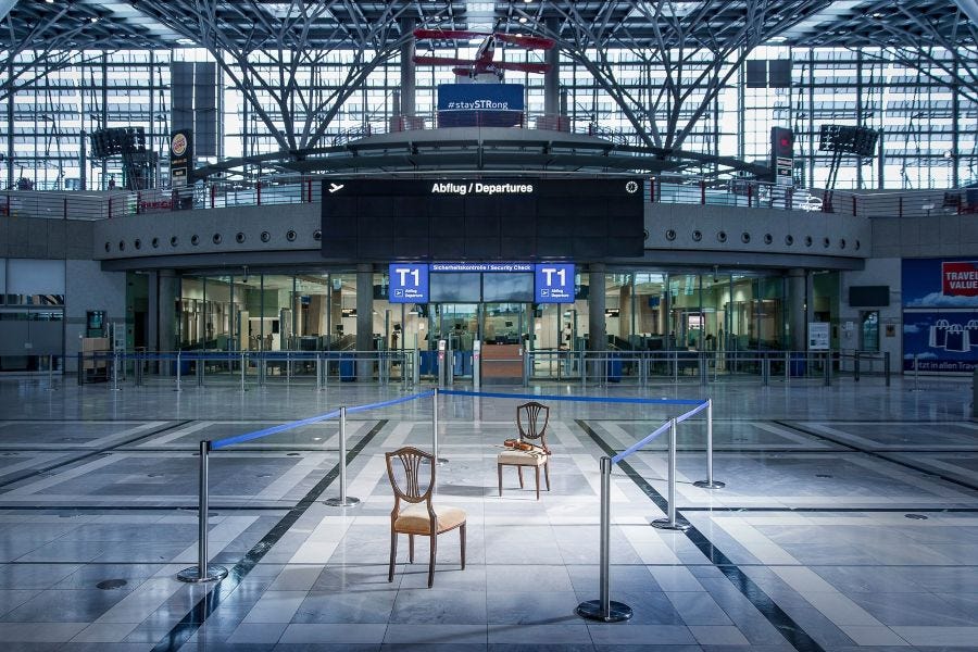 Most of us would go to great lengths to attend a concert right about now—but would you go to Stuttgart? It’s a rhetorical question for most of us, but if by chance you’ll be in the vicinity of Stuttgart Airport on May 8 or 10, you can attend one in a series of 10-minute concerts being staged there by members of the Stuttgart State Opera and SWR Symphony Orchestra. Inspired by the performance artist Marina Abramović’s The Artist Is Present, these concerts involve one performer, one audience member, and no talking; afterward, you’re asked to make a donation of any amount to the German nonprofit Deutsche Orchester-Stiftung. You can find out more (in German) on the airport’s website.