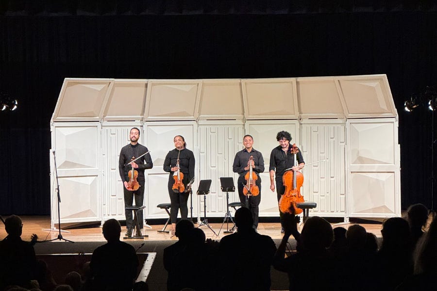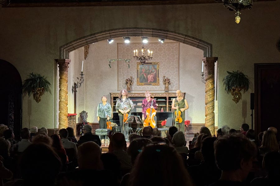Kathy Schuman, Caramoor’s artistic director, proudly made a point of having booked the Poiesis Quartet before their recent triumph at the 2025 Banff International String Quartet Competition… though in truth they’d already won Grand Prize at the 2023 Fischoff Chamber Music Competition. So demand is high, and it’s only going to get higher: just yesterday the quartet was named winner of Chamber Music America’s Cleveland Quartet Award.